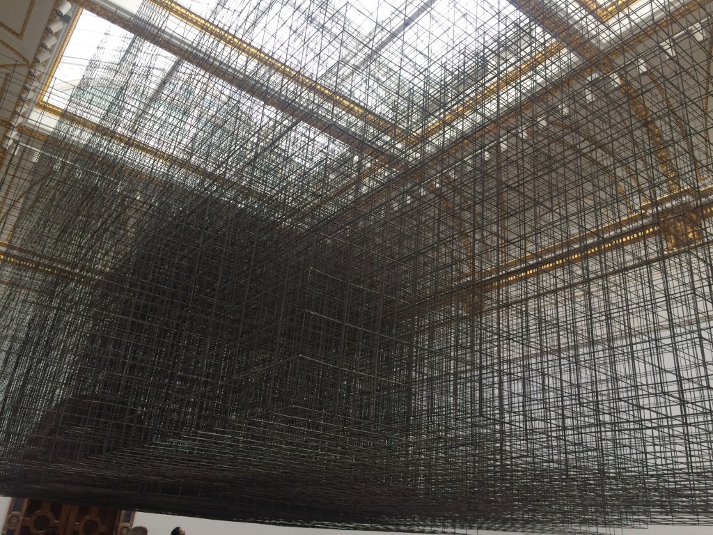 Next I entered a gallery full of 8km of square aluminum tubing coiled into a room, as thought is had suddenly been let go and expanded into the space. It was called ‘Clearing VII 2019’ and aimed to challenge the boundaries of sculpture. You had to bend and step over parts whilst looking into the center you were very much part of the installation, inside its bones.