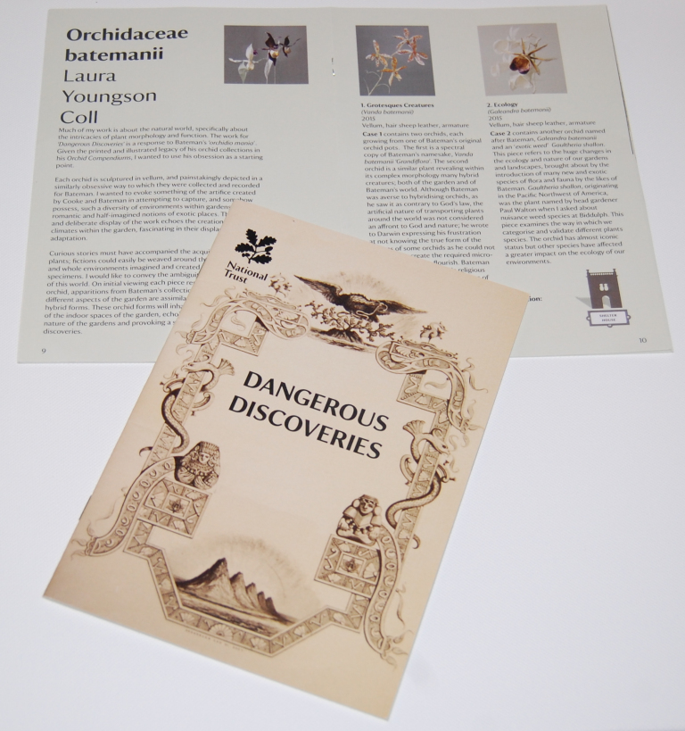 I worked as assistant curator for a contemporary art exhibition held at Biddulph Grange Garden, where I lead on the publicity for the Dangerous Discoveries exhibition. This included designing the exhibitions promotional literature, exhibition booklet, communicating the concept of the project to staff and visitors and promoting via social media.
